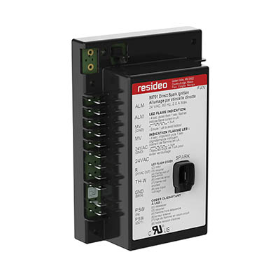 The S8701 family of ignition controls provides fan relay, pressure switch input, ignition sequence, flame monitoring, and safety shutoff for direct spark ignition gas-fired appliances.